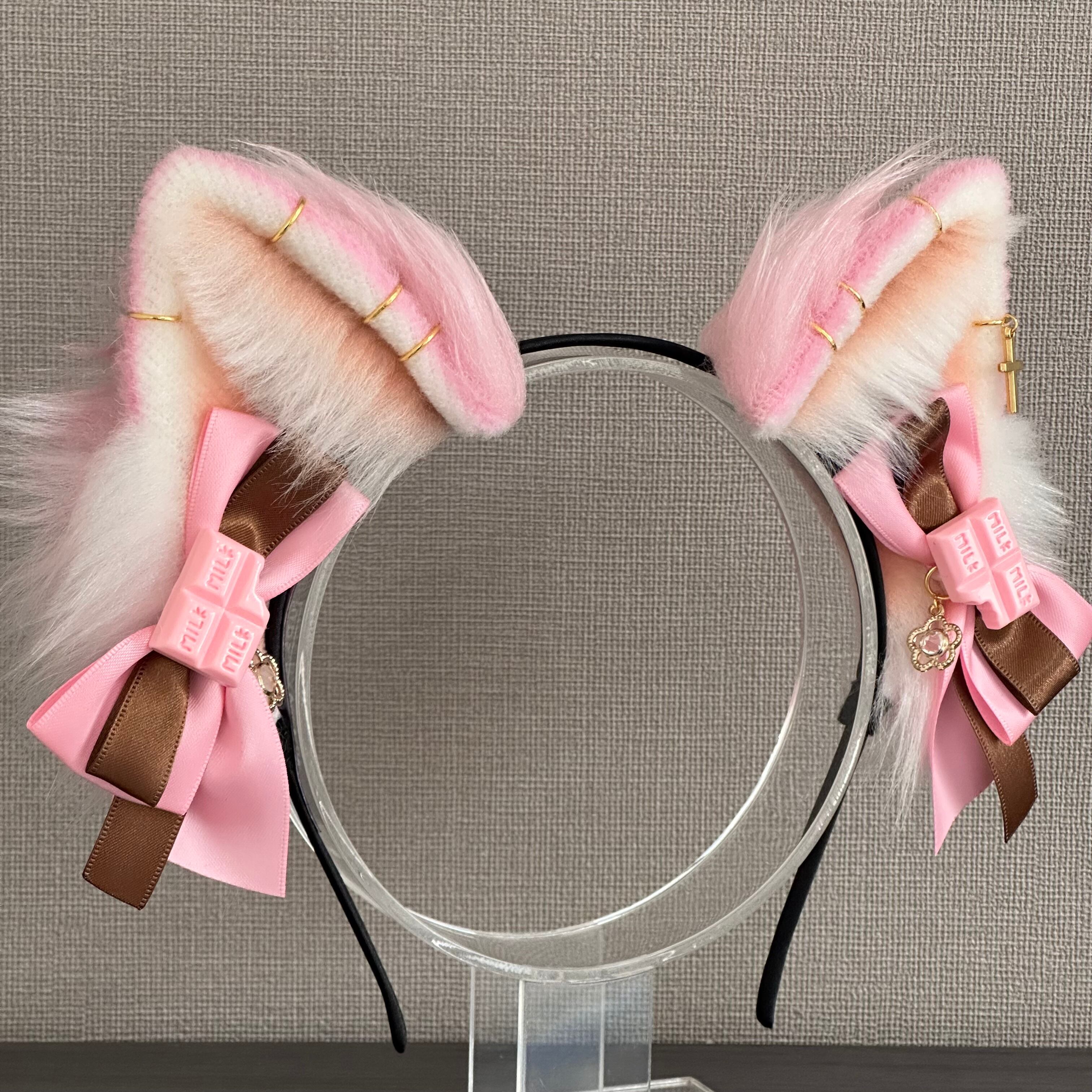 耳の高さは約7cm。リボンは取り外し可能。ピアスは取り外し不可。