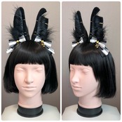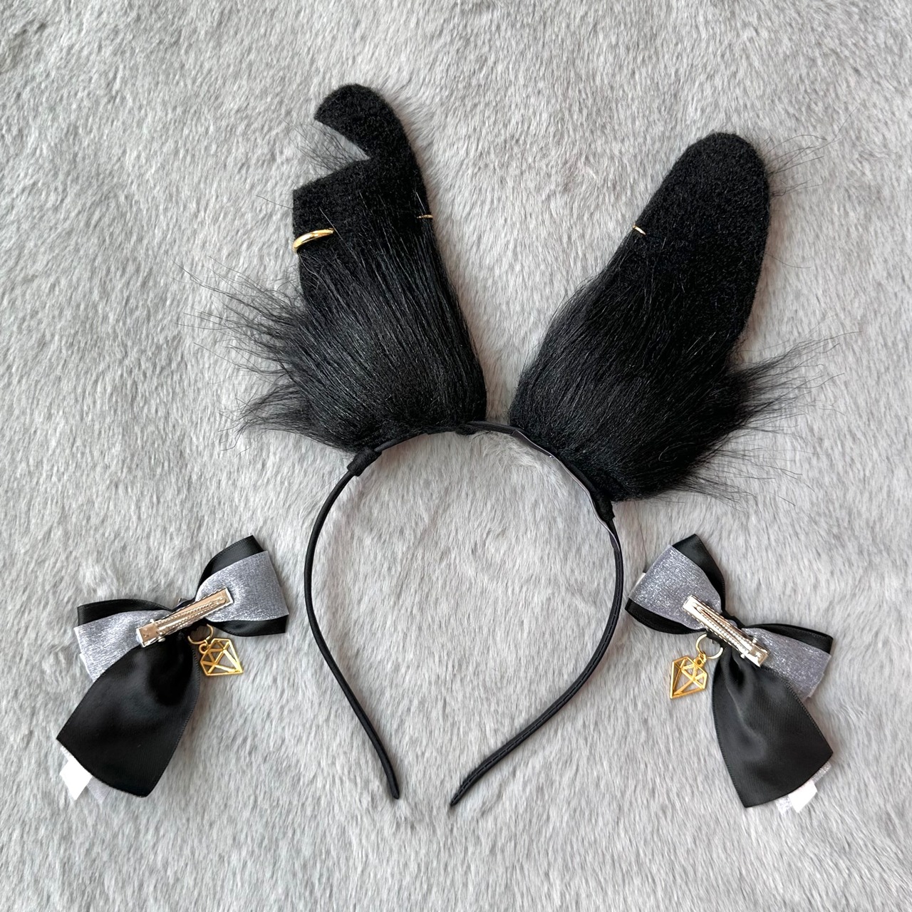 左耳(自分が着用した時)に去勢済みカットが入った真っ黒うさぎ耳です。
