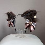クッキーリボンがついた毛が長めの猫耳です。