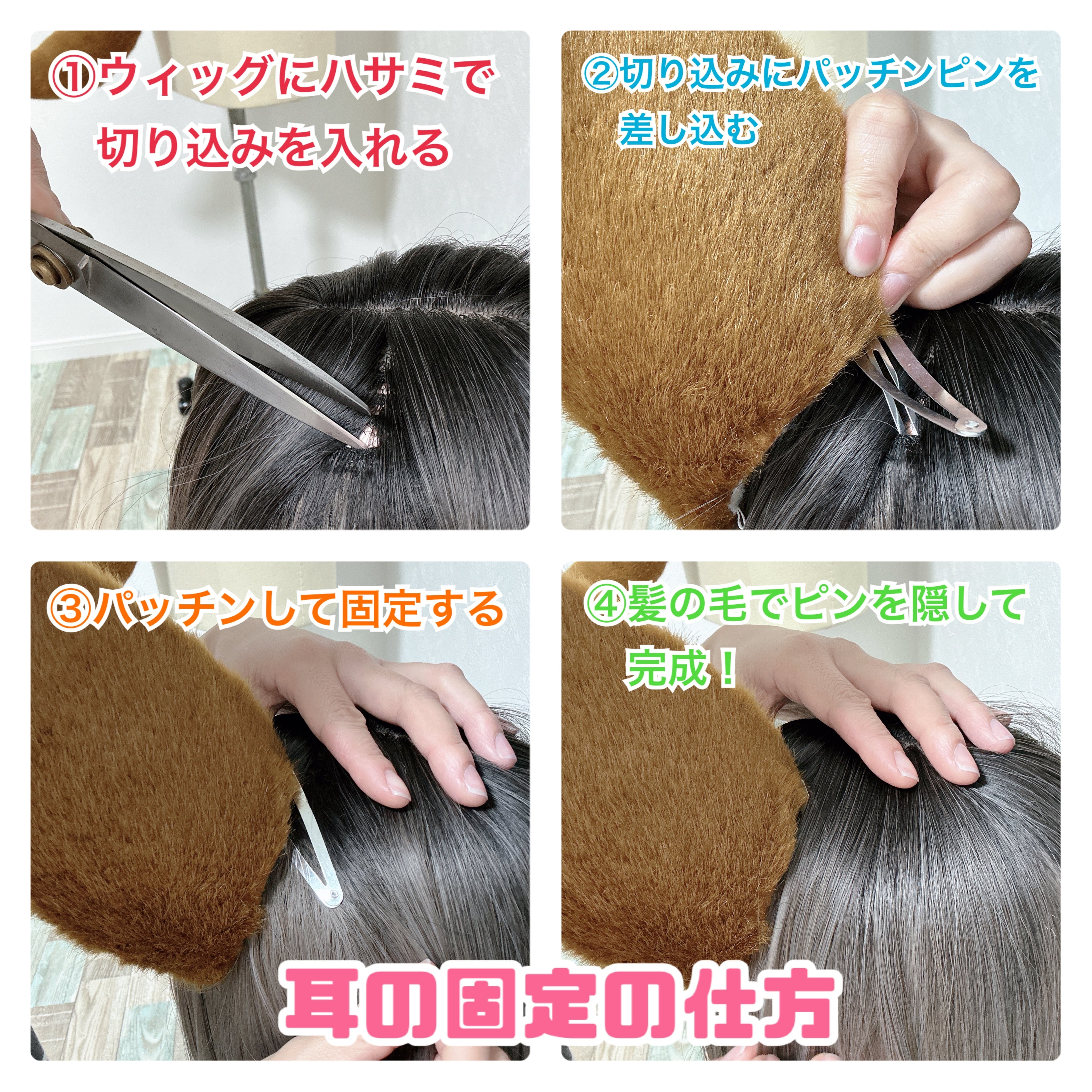 こちらの耳はウィッグに付ける事を前提としています。地毛の場合は付けにくいです。