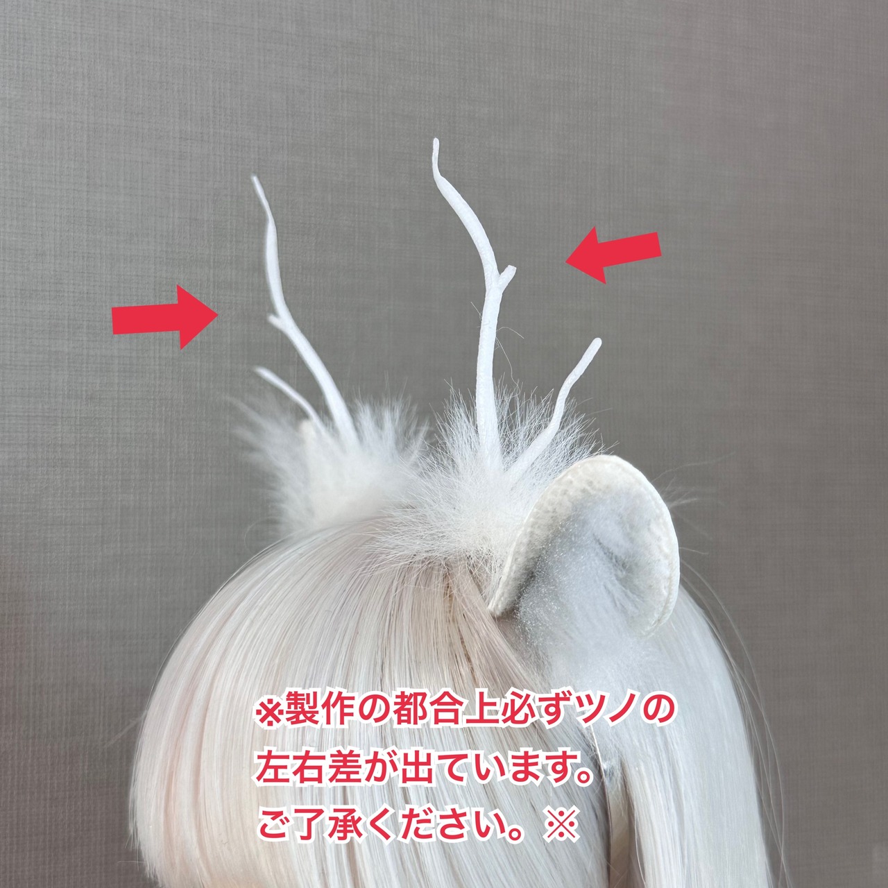 ツノと耳は場所を移動できますので、ドールの雰囲気に合わせて変更して下さい。(タレ耳、立ち耳など)
