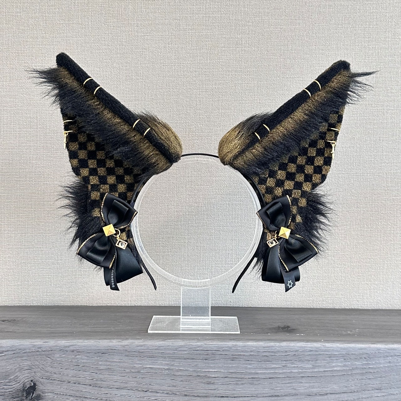 真っ黒にゴールドの着色したアヌビス神をイメージした大きめキツネ耳です。